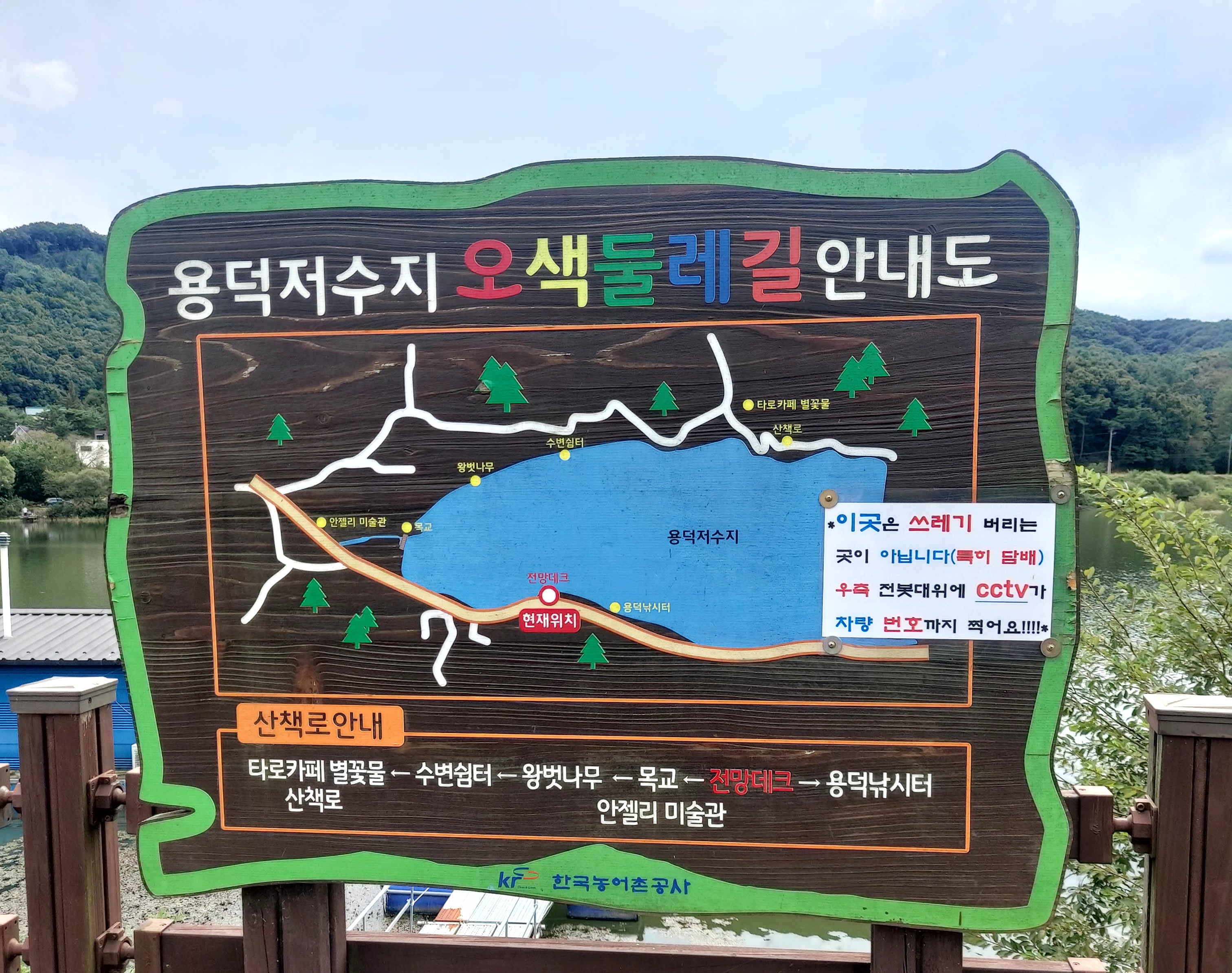 요렇게 해서 용덕 저수지 한바퀴를 다 돌고 왔어요.