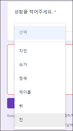 질문 형식이 다양한데, '드롭다운'으로 하셔야 오류가 잘 안난다고 합니다.