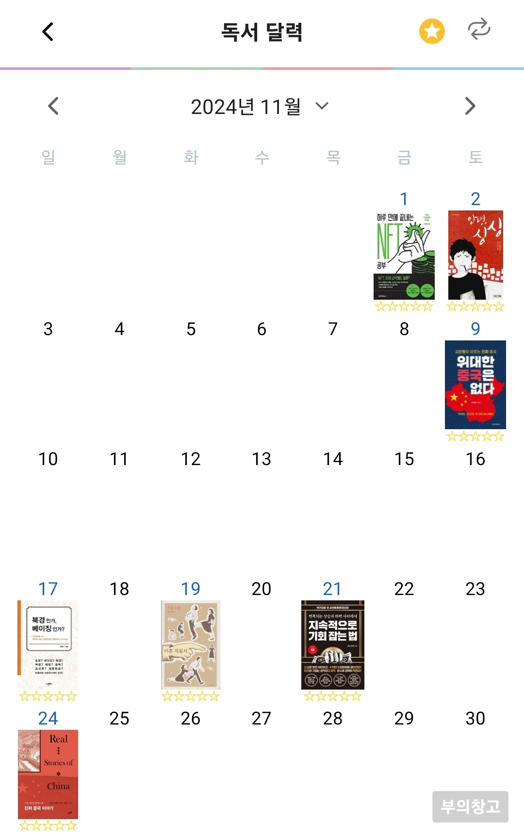 지난 11월 독서 달력 공유합니다.