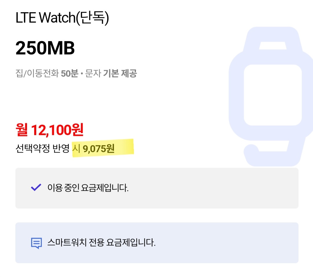 그리고 LTE 워치 단독 요금제가 월 12100원입니다.